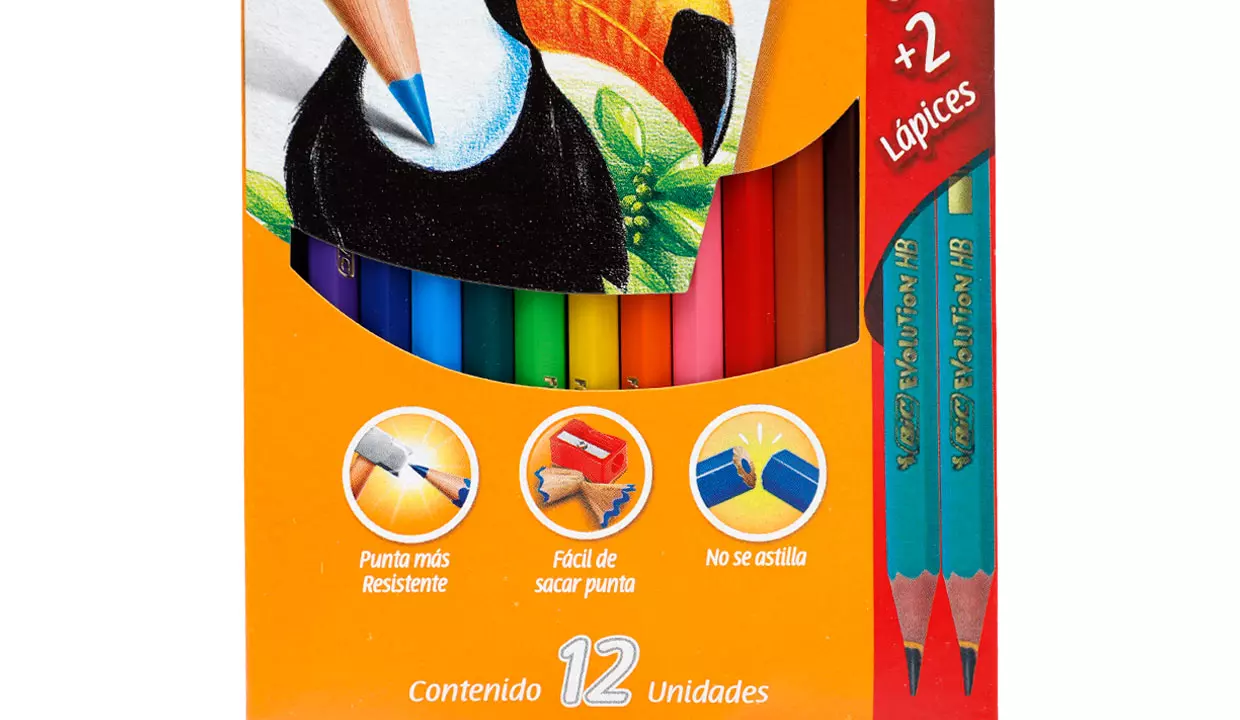 CAJA DE 12 LÁPICES DE COLORES + GRATIS 2 LÁPIZ BIC