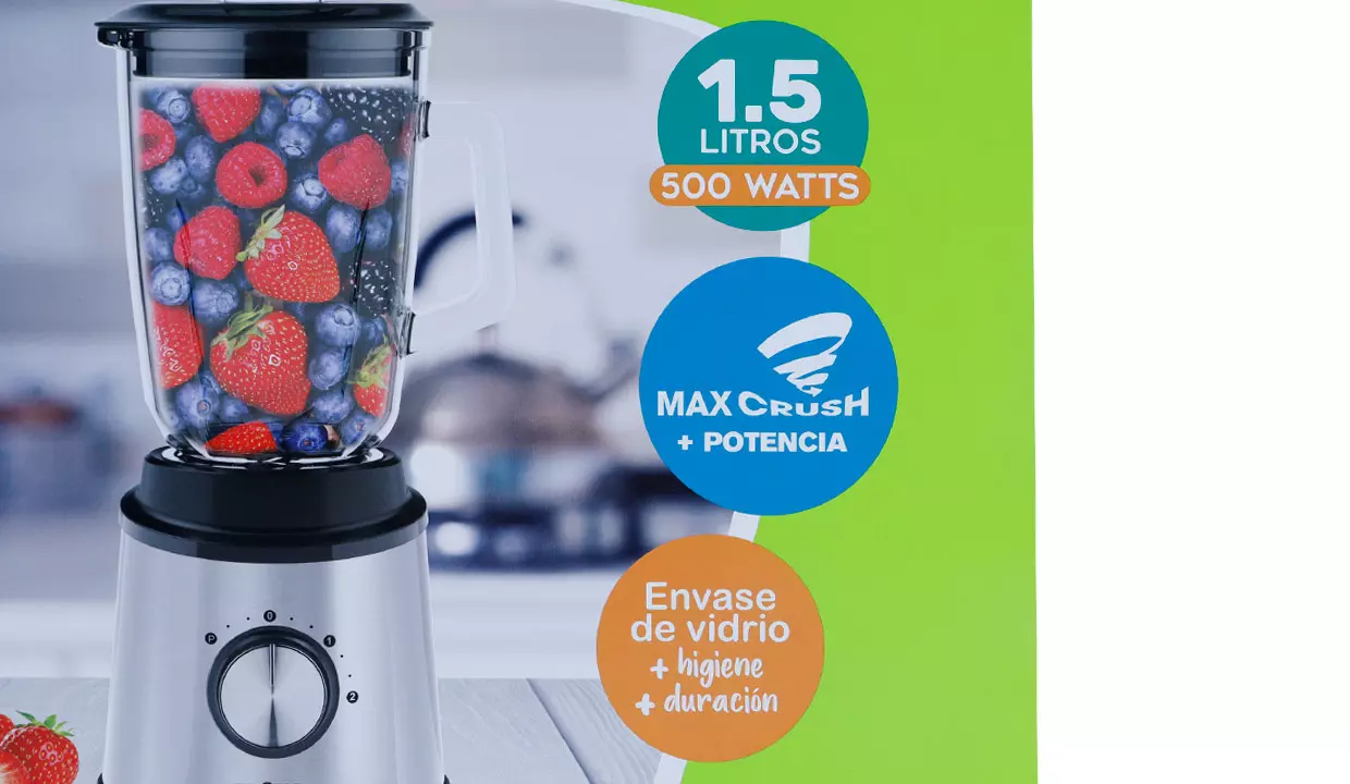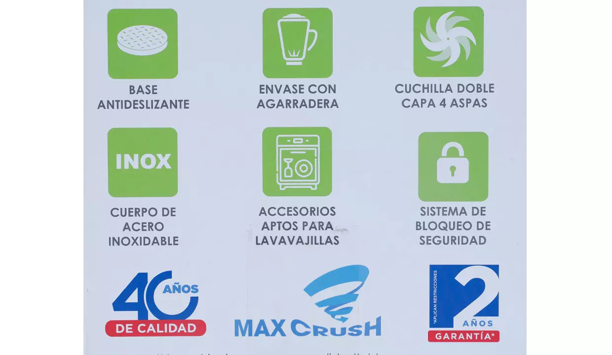 | Material | Jarra de vidrio, plástico y acero inoxidable |