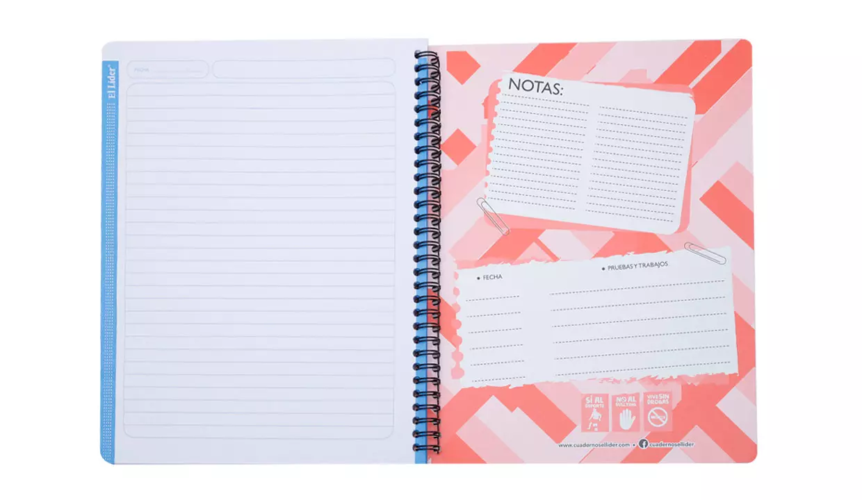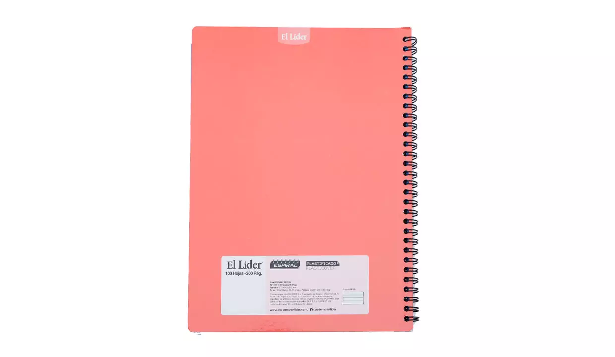 CUADERNO EL LÍDER RESORTE 100 HOJAS TAPA FLEXIBLE