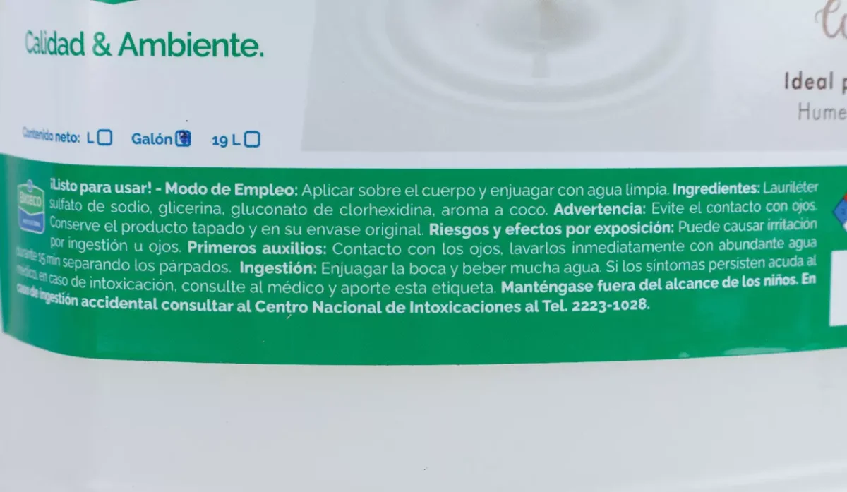 | Ingredientes | Lauriléter sulfato de sodio, glicerina, gluconato de clorhexidia y aroma a coco |