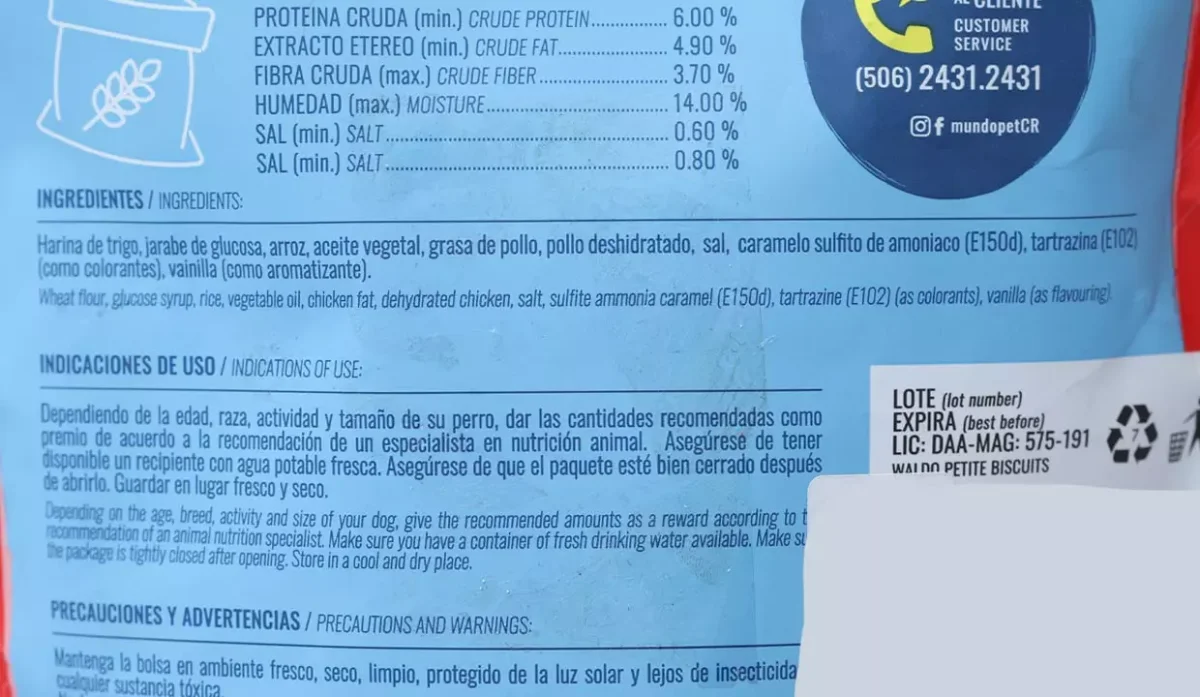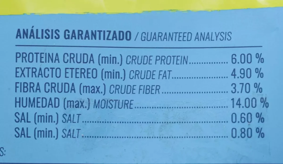 | Ingredientes | Harina de trigo, jarabe de glucosa, arroz, aceite vegetal, grasa de pollo, pollo deshidratado, sal, caramelo sulfito de amoniaco (E150d), tartrazina (E102)(como colorantes), vainilla (como aromatizante) |