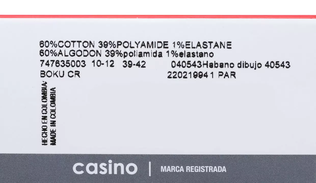 Material | 60% algodón, 39% poliamida, 1% elastano |