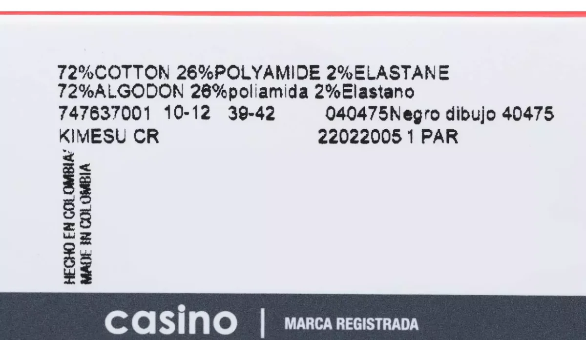 | Material | 72% algodón, 26% poliamida, 2% elastano |