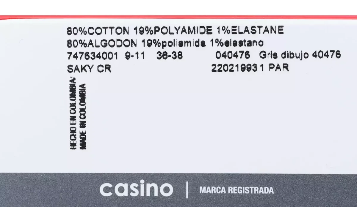 | Material | 80% algodón, 19% poliéster, 1% elastano |