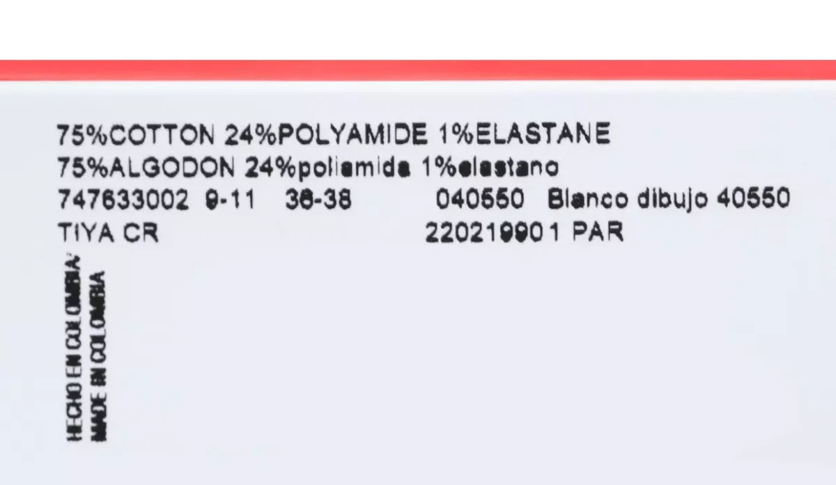 | Material | 75% algodón, 24% poliamida, 1% elastano |