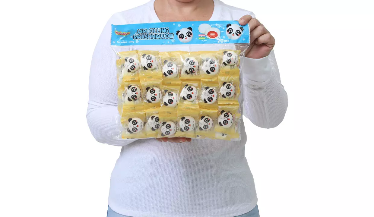 | Características | Malvaviscos sabor a fresa con figura de panda |