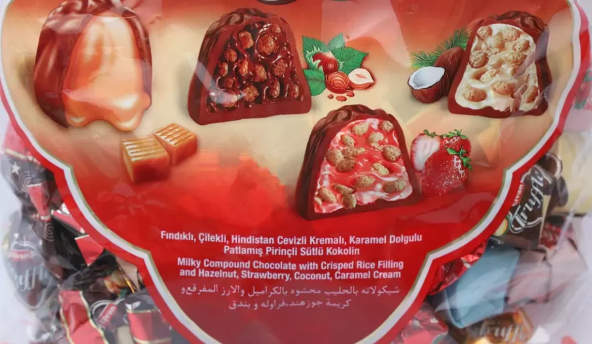 | Características | Chocolates con leche rellenos de arroz crujiente y crema de avellana, fresa, coco y caramelo |