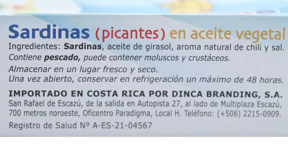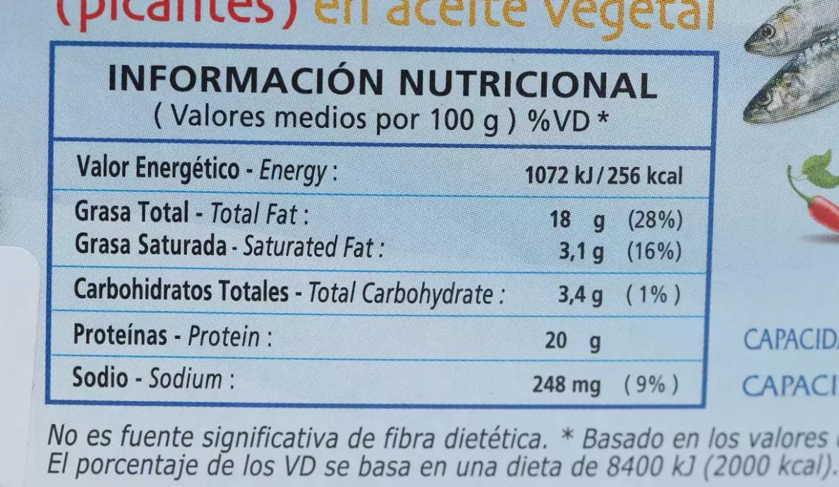 | Características | Sardinas picantes en aceite vegetal |