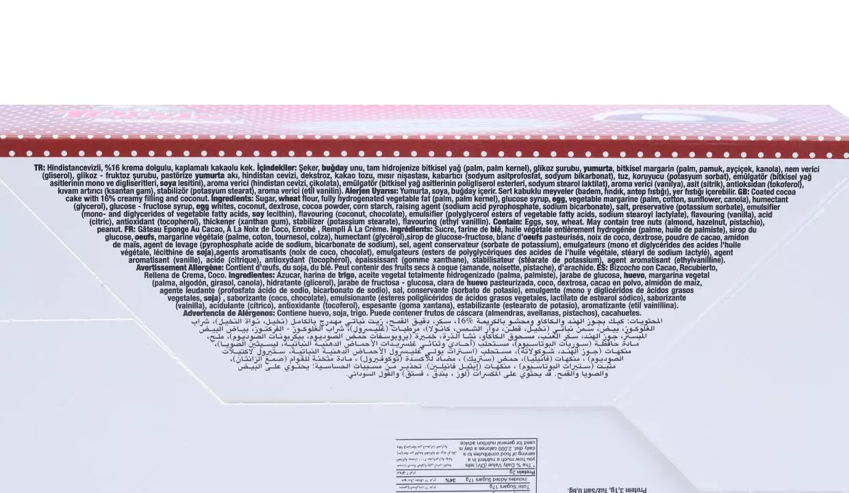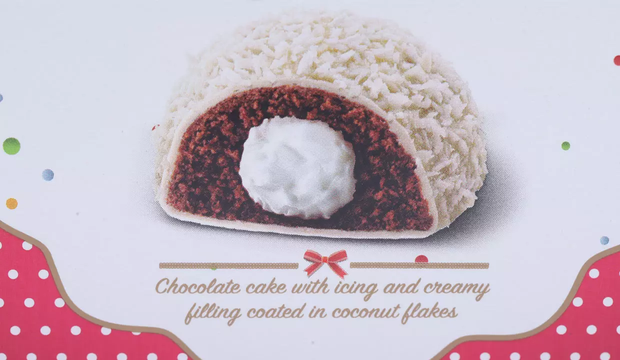 Características | Pastel de chocolate con glaseado y relleno cremoso, cubierto de coco rallado |