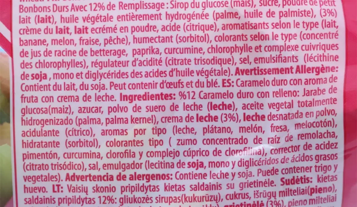 | Características | Confites rellenos con sabor a crema de leche y frutas |