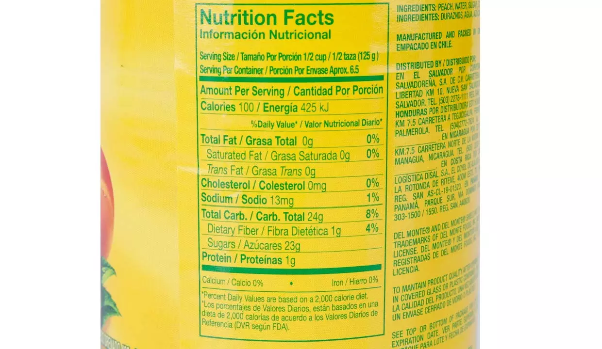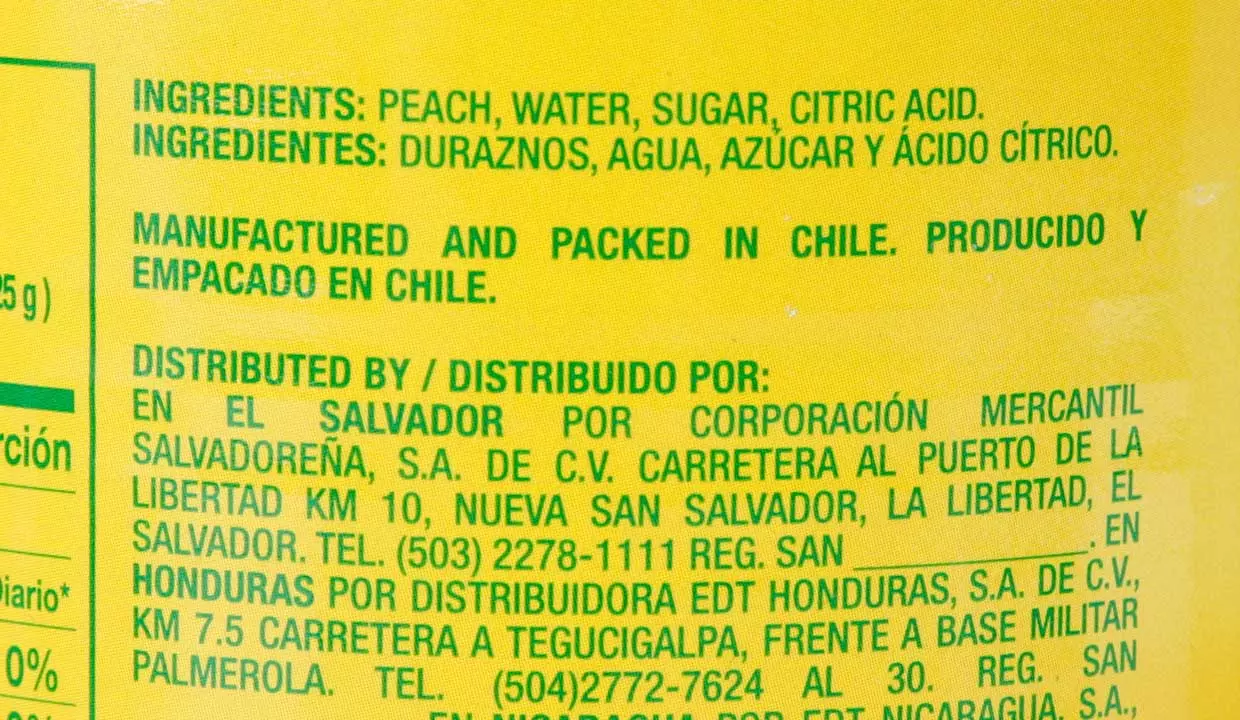 | Ingredientes | Duraznos, agua, azúcar y ácido cítrico |