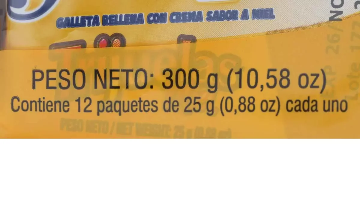 | Características | Galleta rellena con crema sabor a miel |