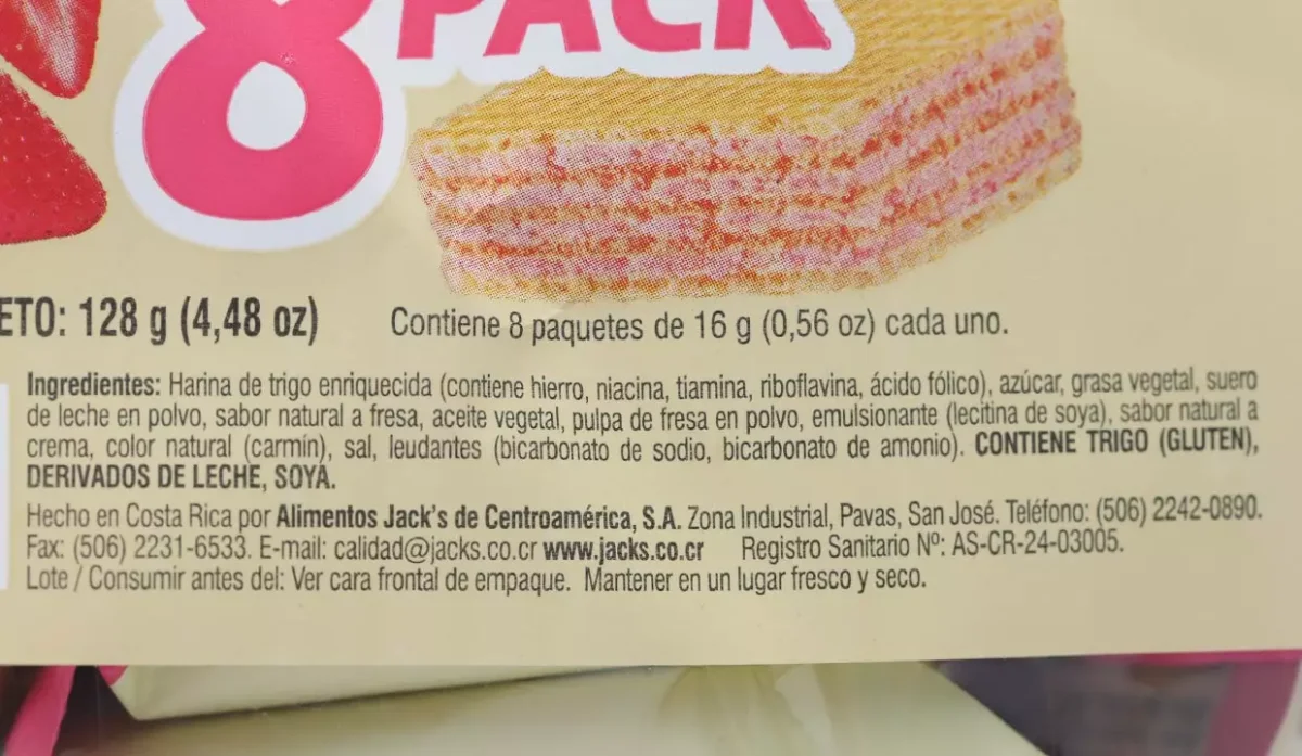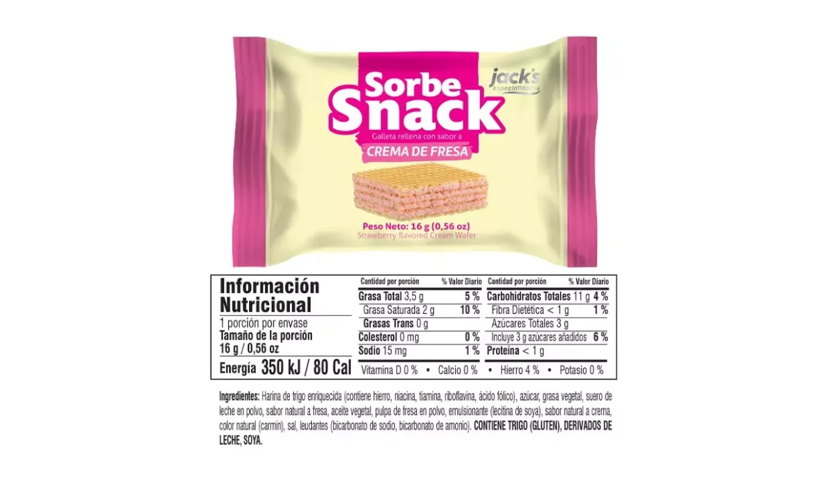 | Características | Galletas rellenas con sabor a crema de fresa |