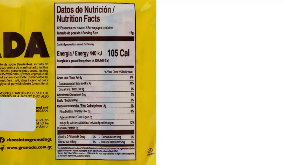 | Características | Galleta tipo wafer rellena de crema de maní con cobertura sabor a chocolate |