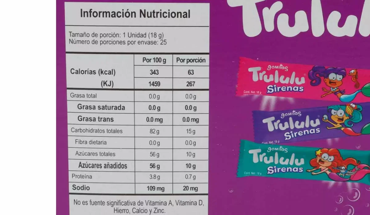 | Características | Gomitas sabor mandarina, sandía, frutos rojos y fresa |