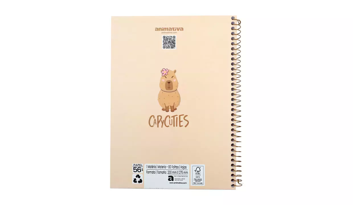 CUADERNO ANIMATIVA RESORTE 80 HOJAS TAPA FLEXIBLE CAPIBARA