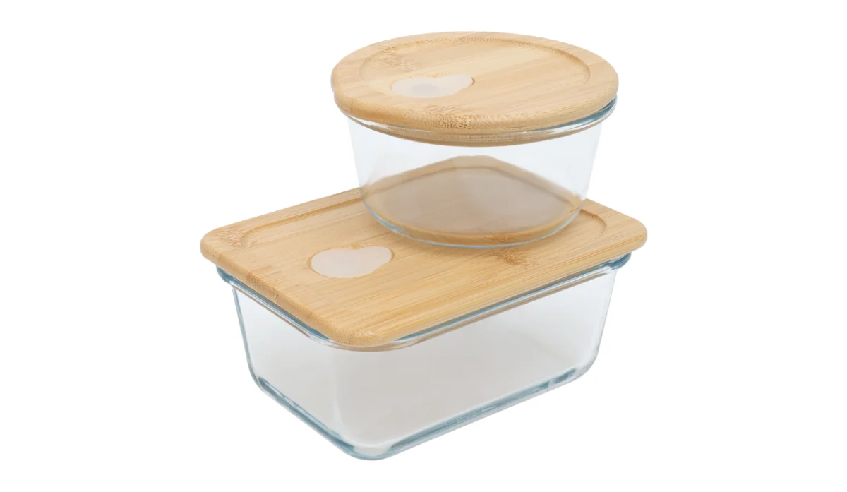 | Material | Vidrio refractario, tapa de bambú y silicón |