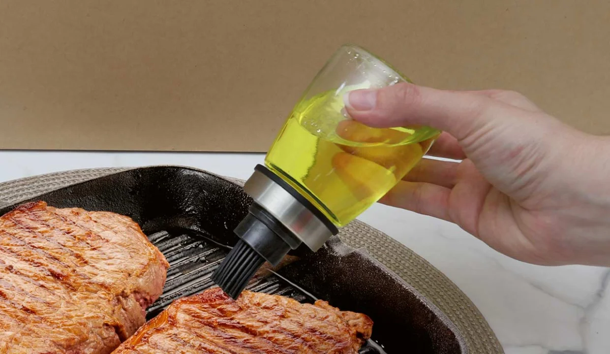 | Características | Cuenta con un orificio donde al volcarlo dispensa el aceite y al mismo tiempo esparse con la brocha |