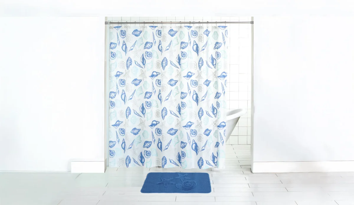SET DE CORTINA Y ALFOMBRA CONCHAS