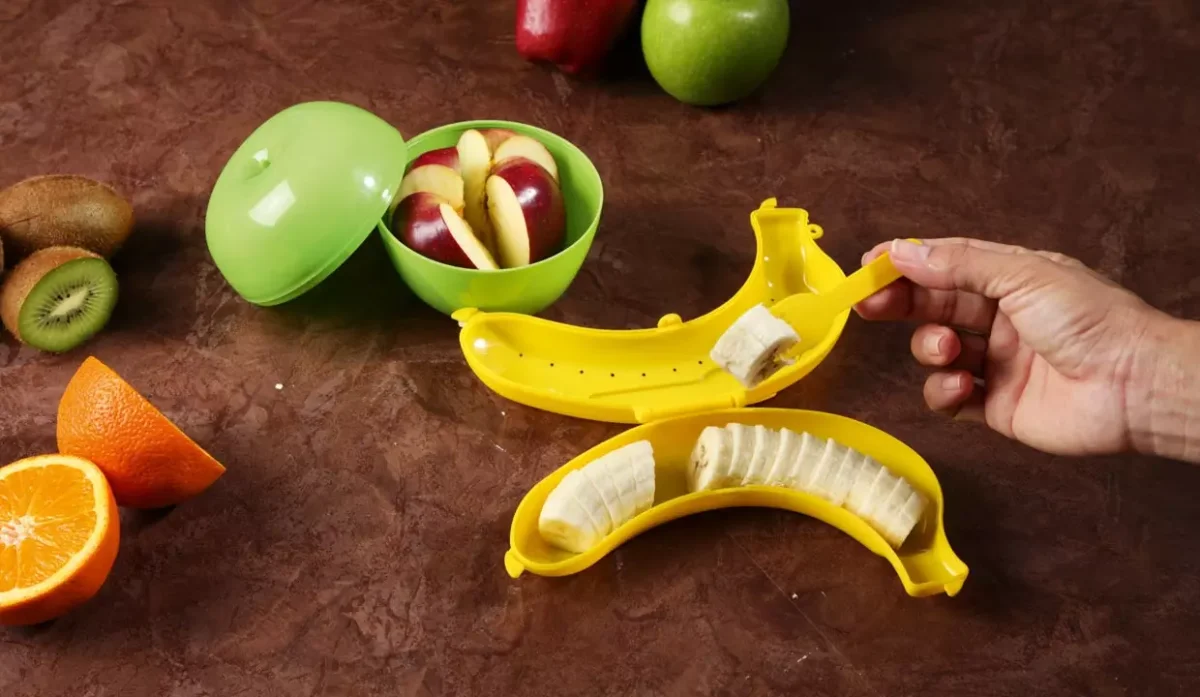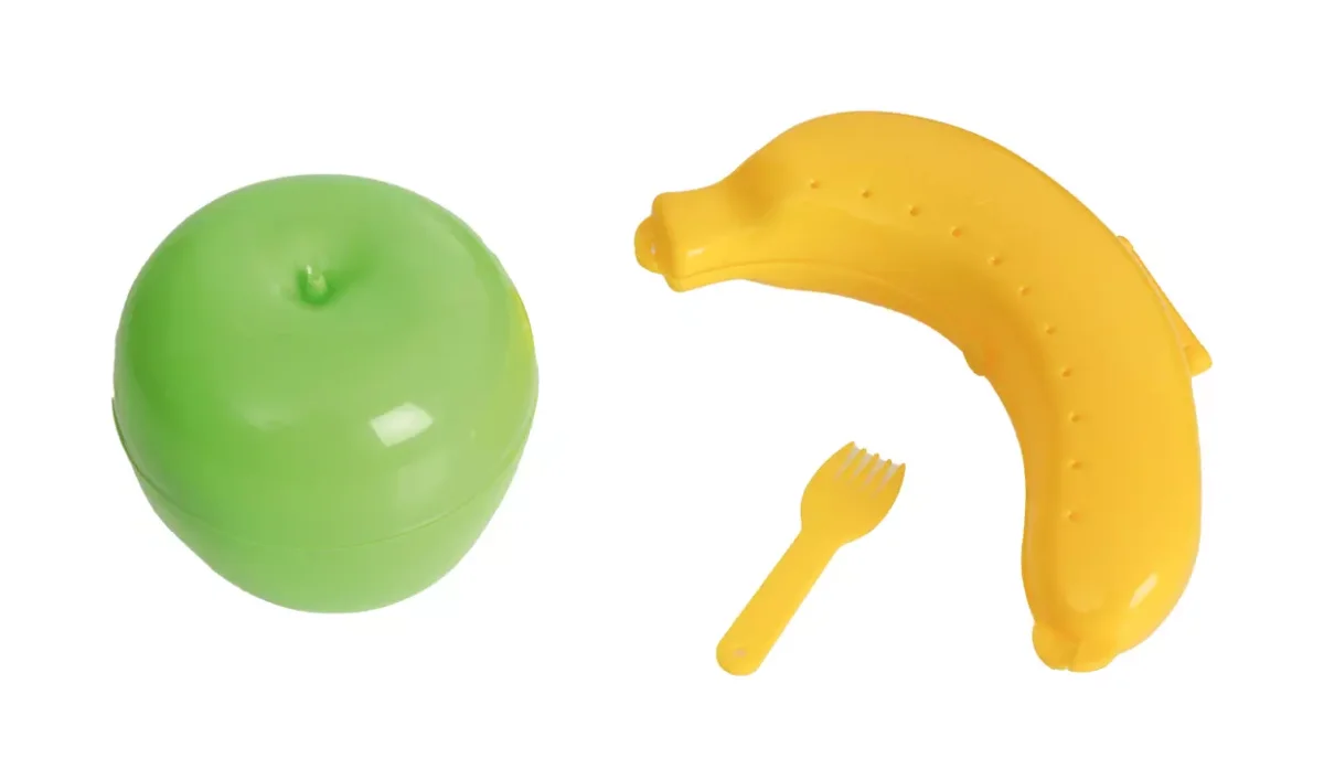 | Características | El recipiente con forma de banano cuenta con orificios para ventilar y el mini tenedor se acopla fácilmente |