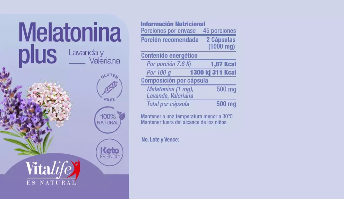 MELATONINA PLUS LAVANDA Y VALERIANA VITALIFE