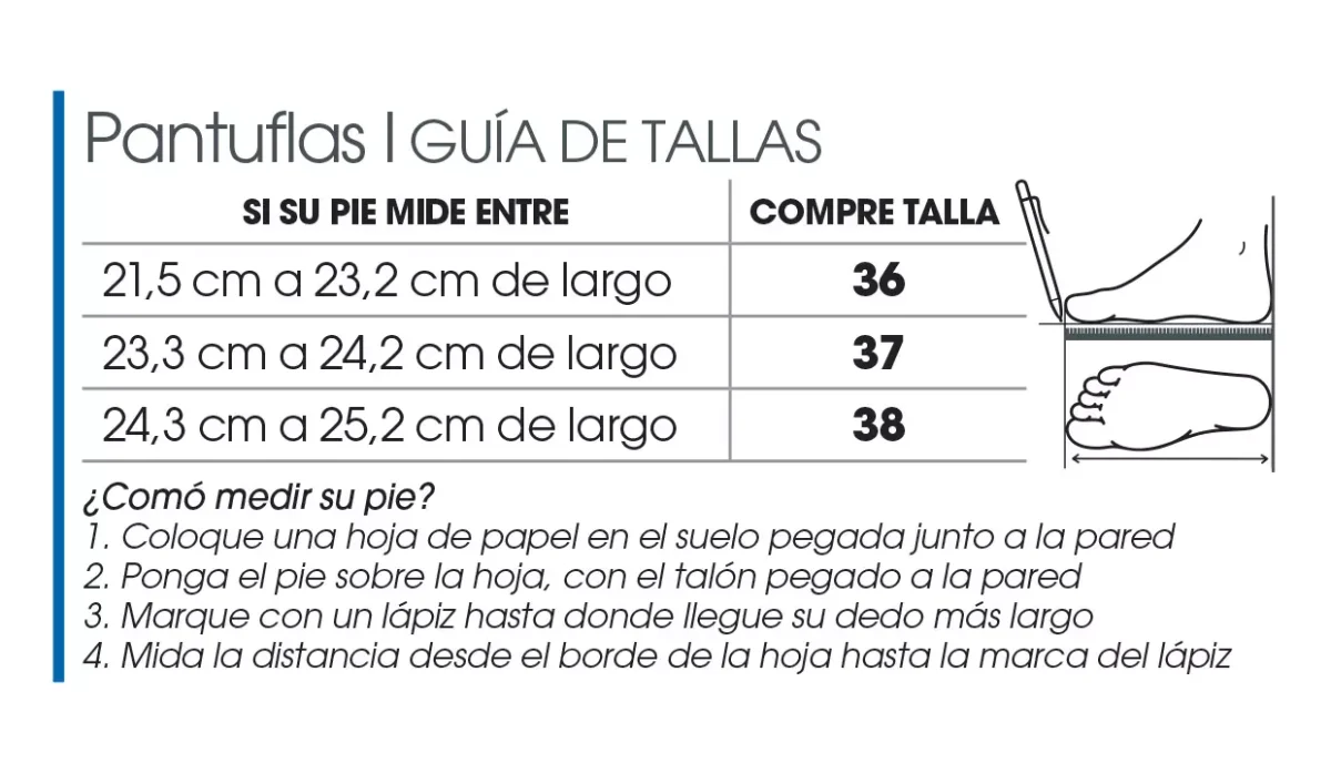 | Talla | 38 (24,3 cm a 25,2 cm de largo) |