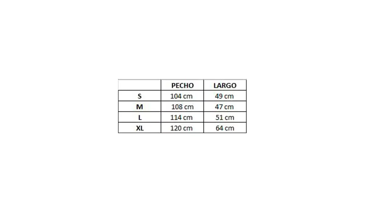 | Material | 54% algodón, 38% poliéster y 8% spandex |