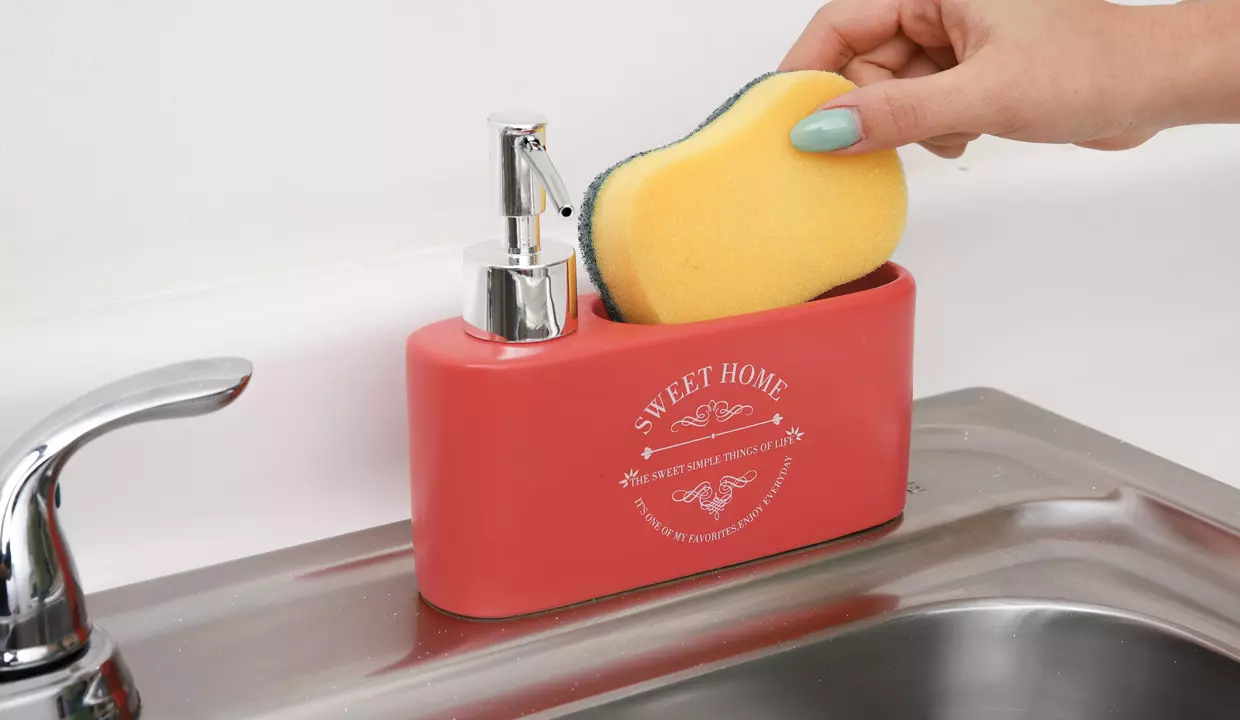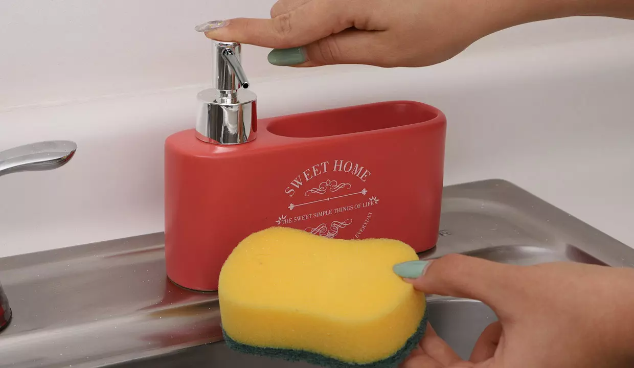 DISPENSADOR DE JABÓN CON PORTA ESPONJA