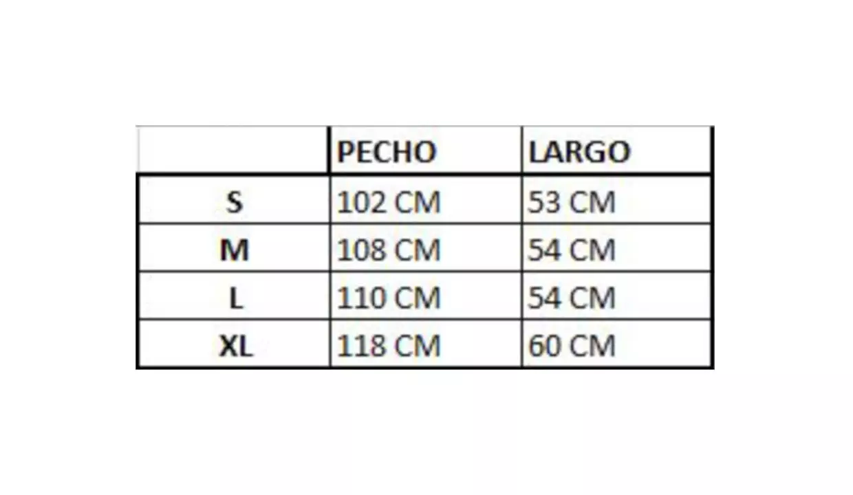 | Material | 54% algodón, 38% poliéster y 8% spandex |