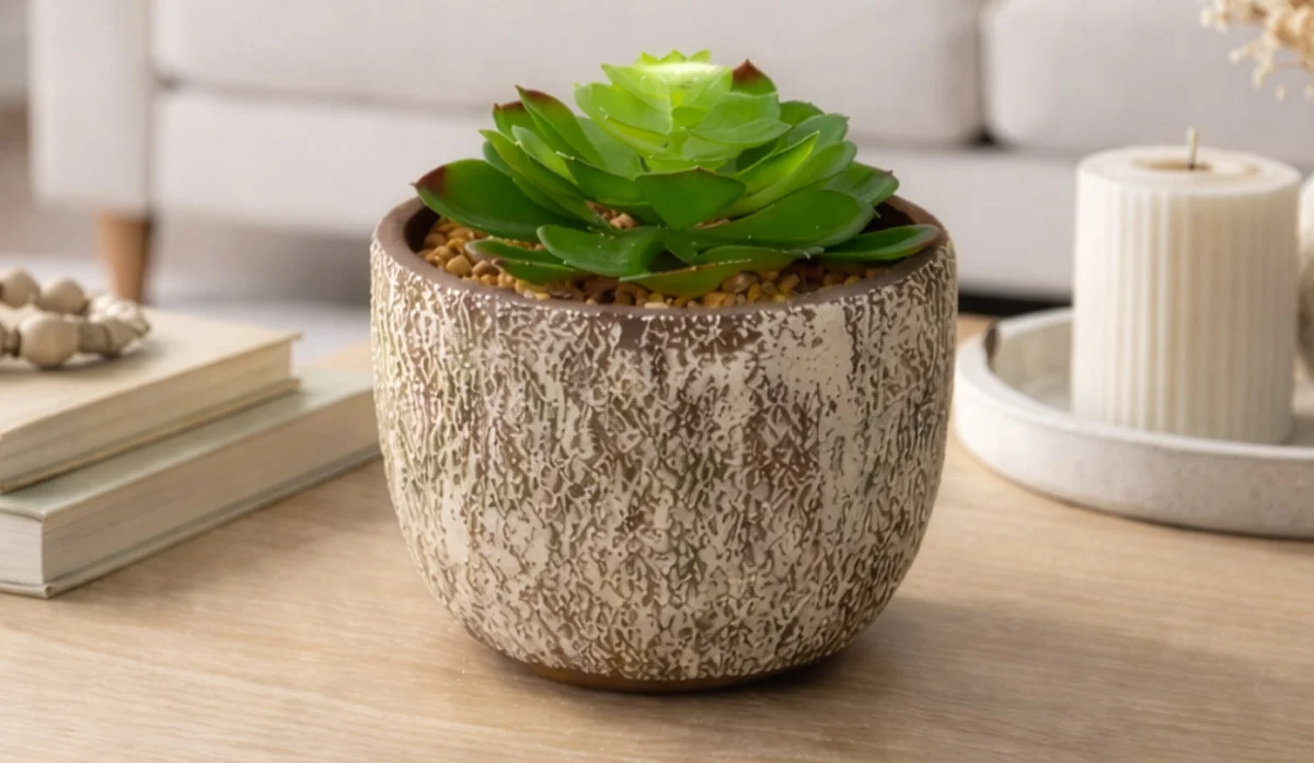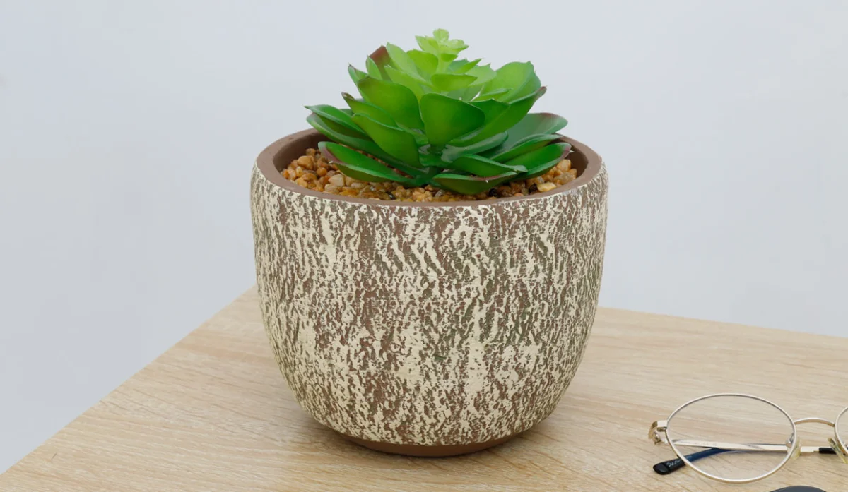 MACETA DE CEMENTO CON PLANTA ARTIFICIAL