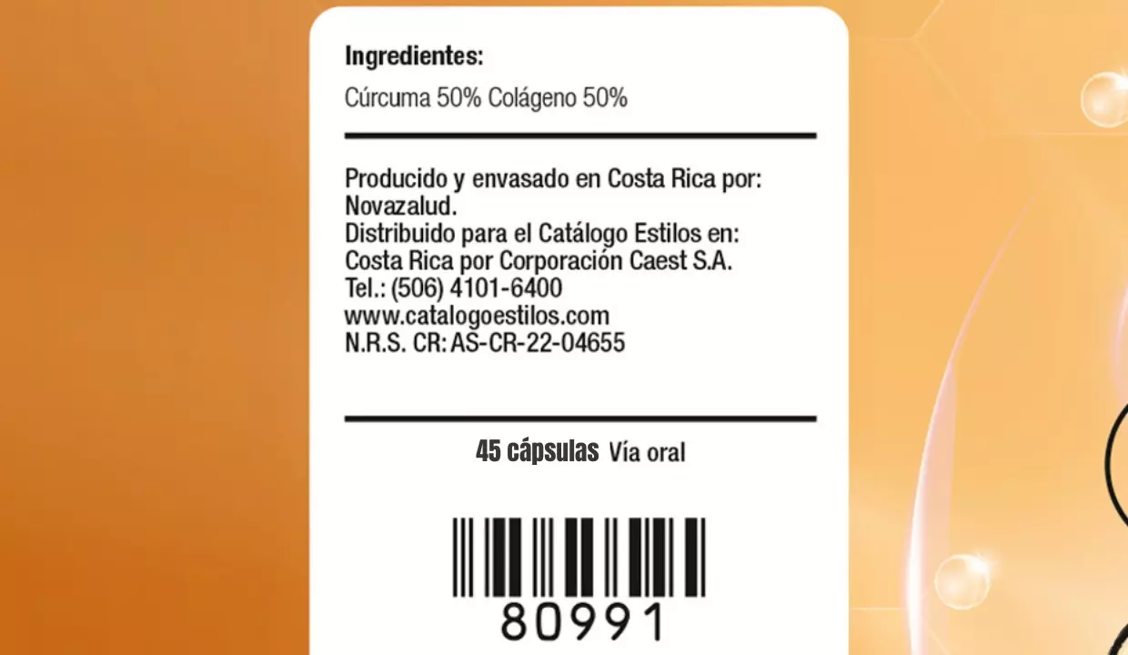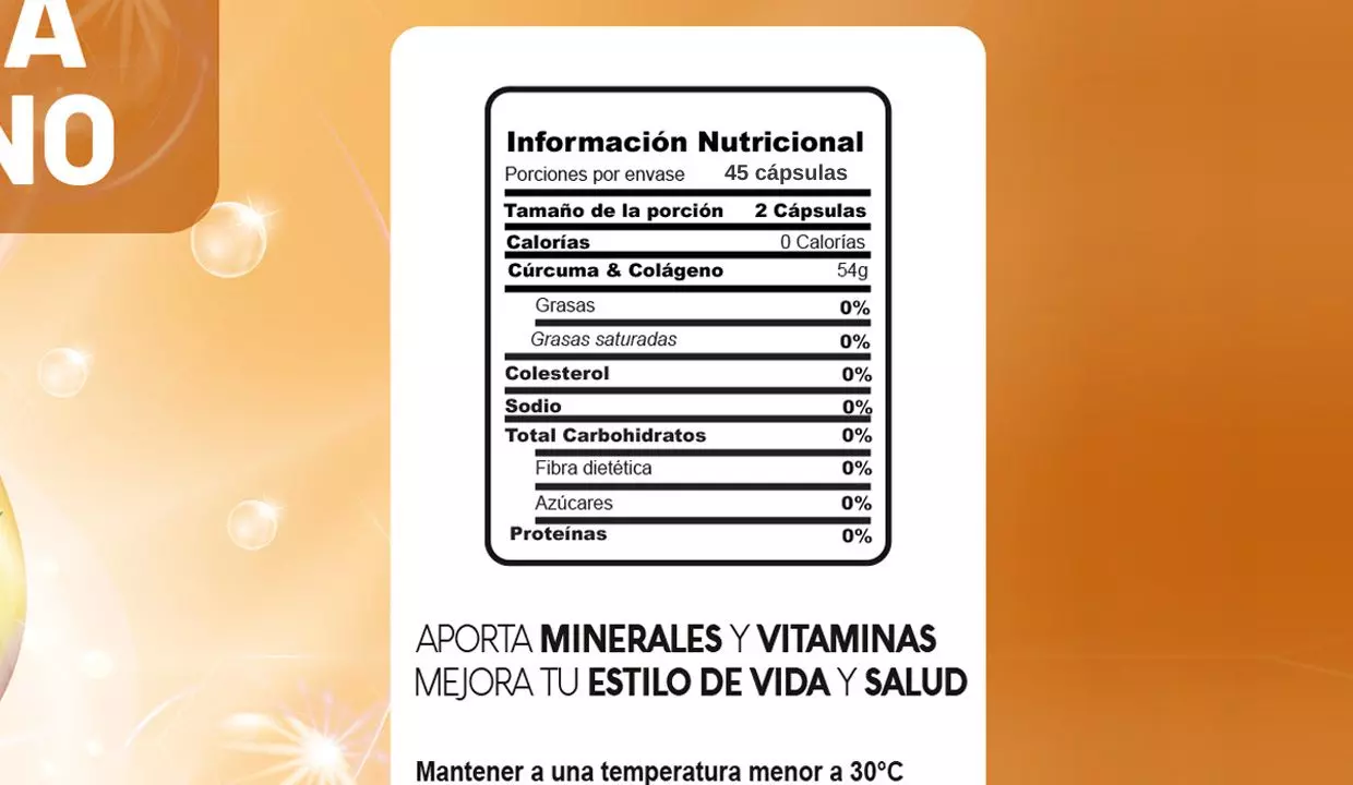 | Ingredientes | Cúrcuma 50% y colágeno 50% |