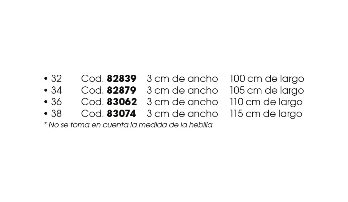 | Tamaño | 36 (3 cm de ancho x 110 cm de largo) |