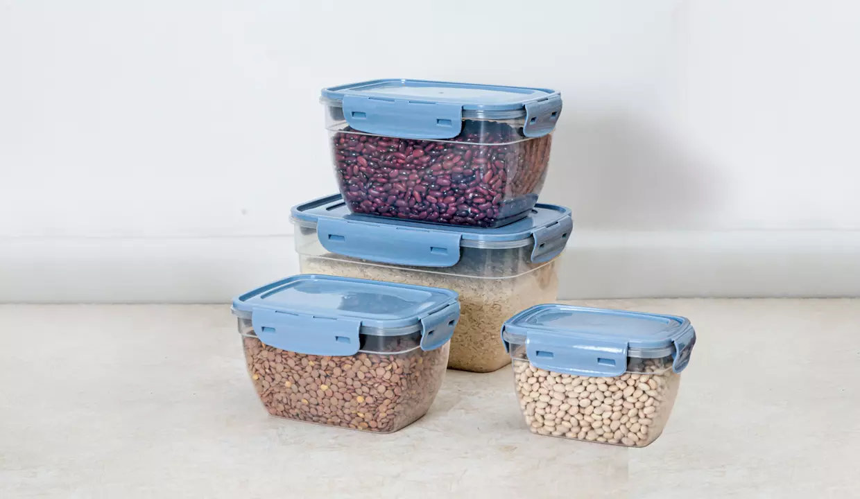 SET DE 4 RECIPIENTES RECTANGULARES CON TAPA