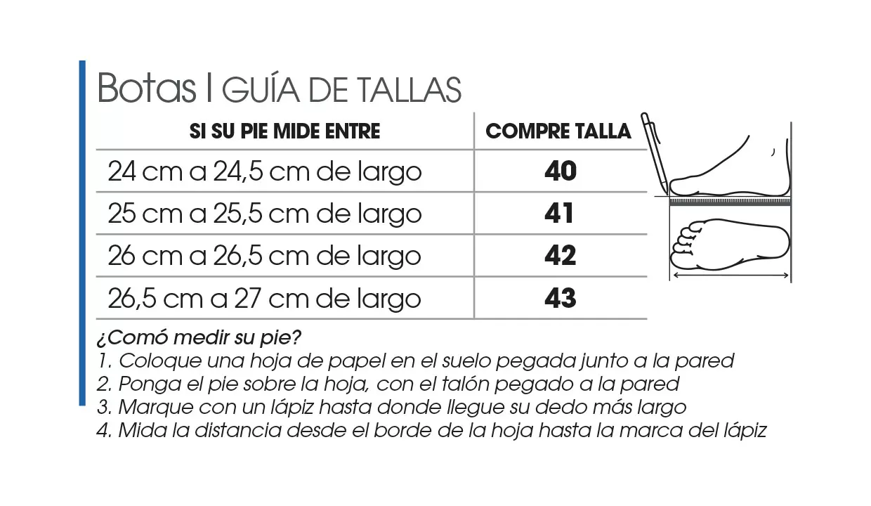 Tamaño | Si su pie mide entre 26 cm a 26,5 cm de largo |