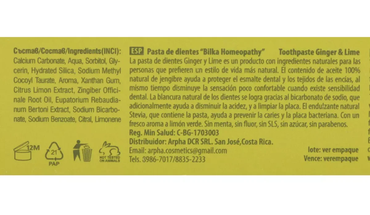 PASTA DENTAL GINGER & LIME BILKA 75ML