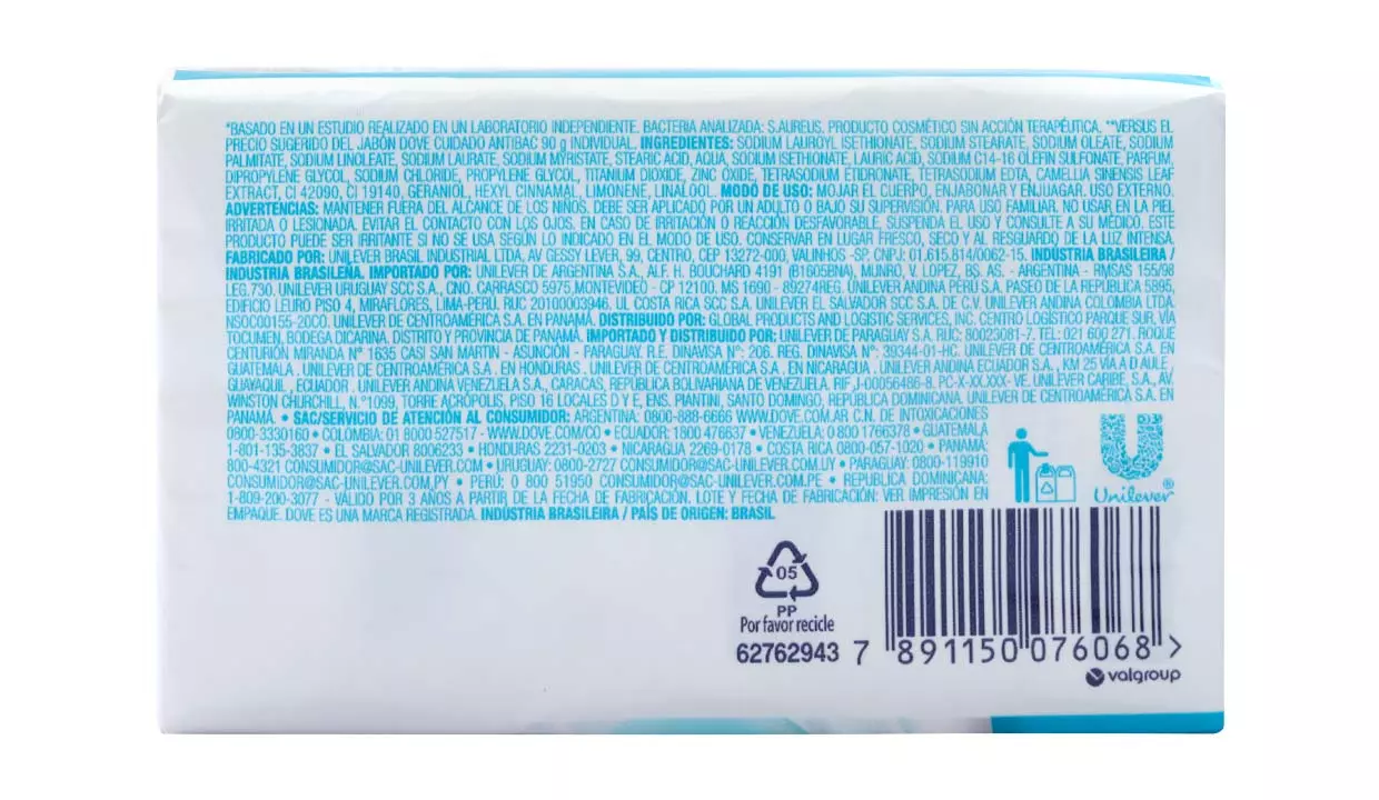 JABÓN ANTIBACTERIAL CUIDA & PROTEGE DOVE 3PACK