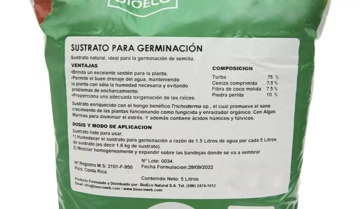 ABONO Y SUSTRATO PARA GERMINACIÓN BIOECO 5 LITROS