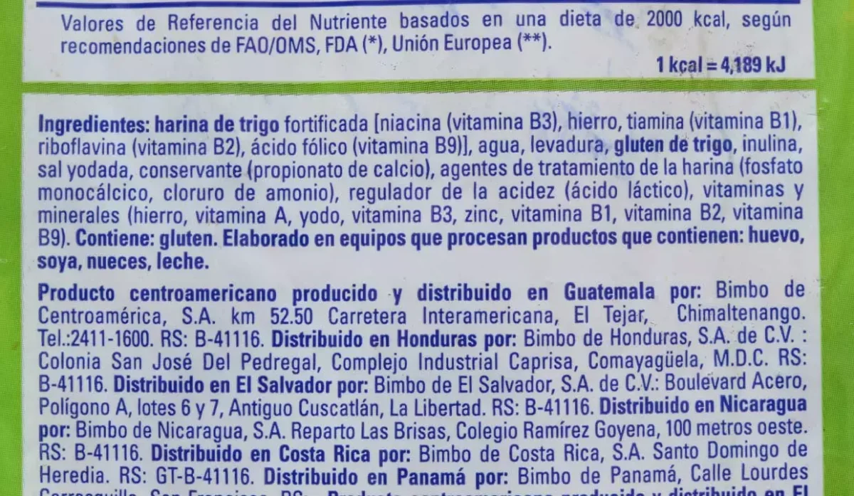 | Ingredientes | Harina de trigo, agua, hierro, vitaminas B1, B2, B3 y sal |