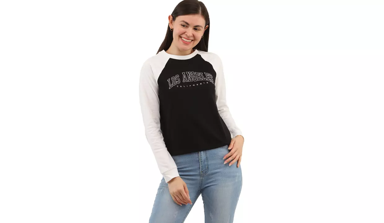 CAMISETA MANGA LARGA ACTIVE USA NEGRO C/BLANCO PARA MUJER TM
