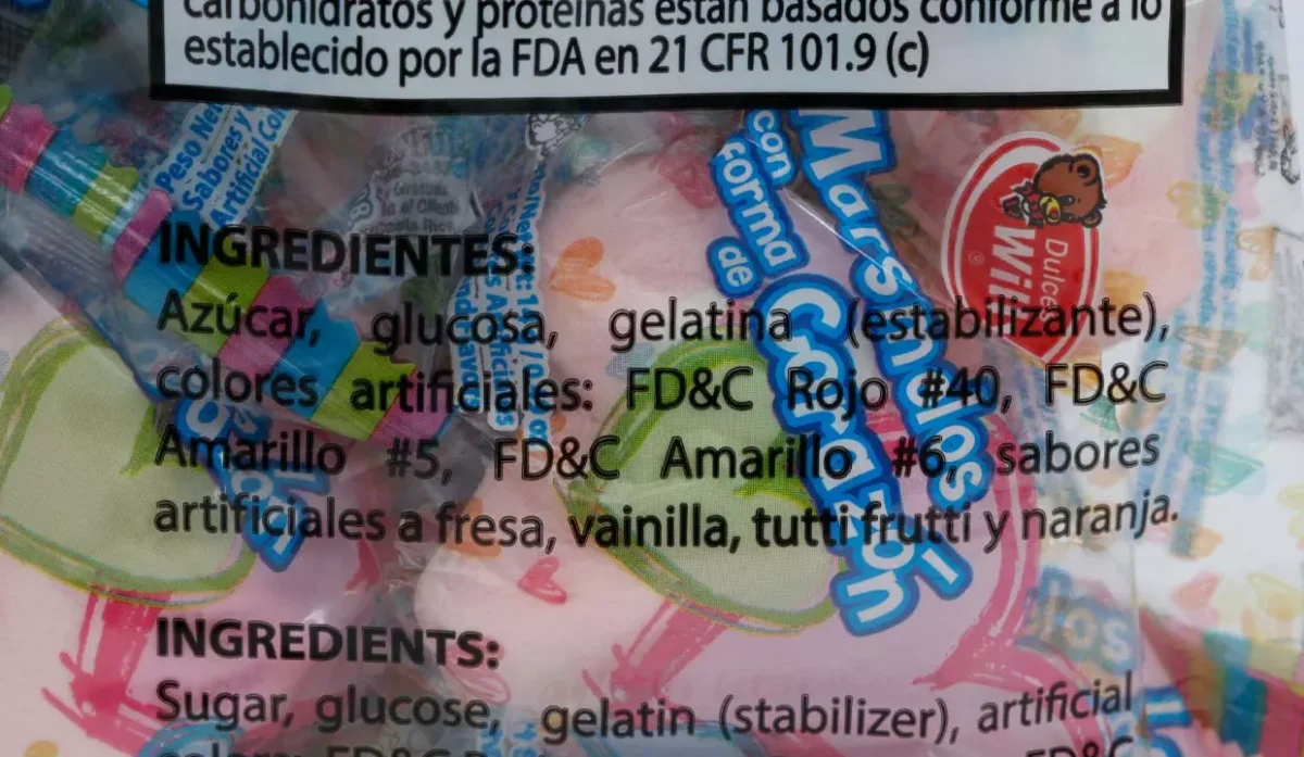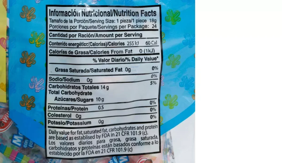 | Ingredientes | Azúcar, glucosa, gelatina, colores artificiales rojo#40, amarillo#5 y #6, sabores artificiales a fresa, vainilla, tutti frutti y naranja |