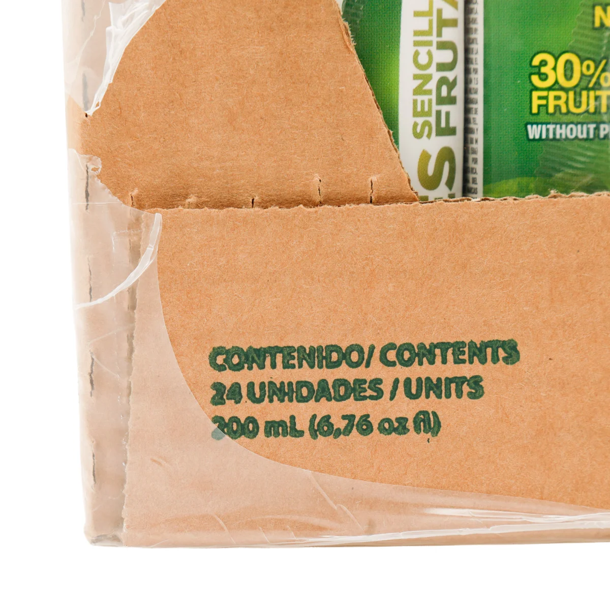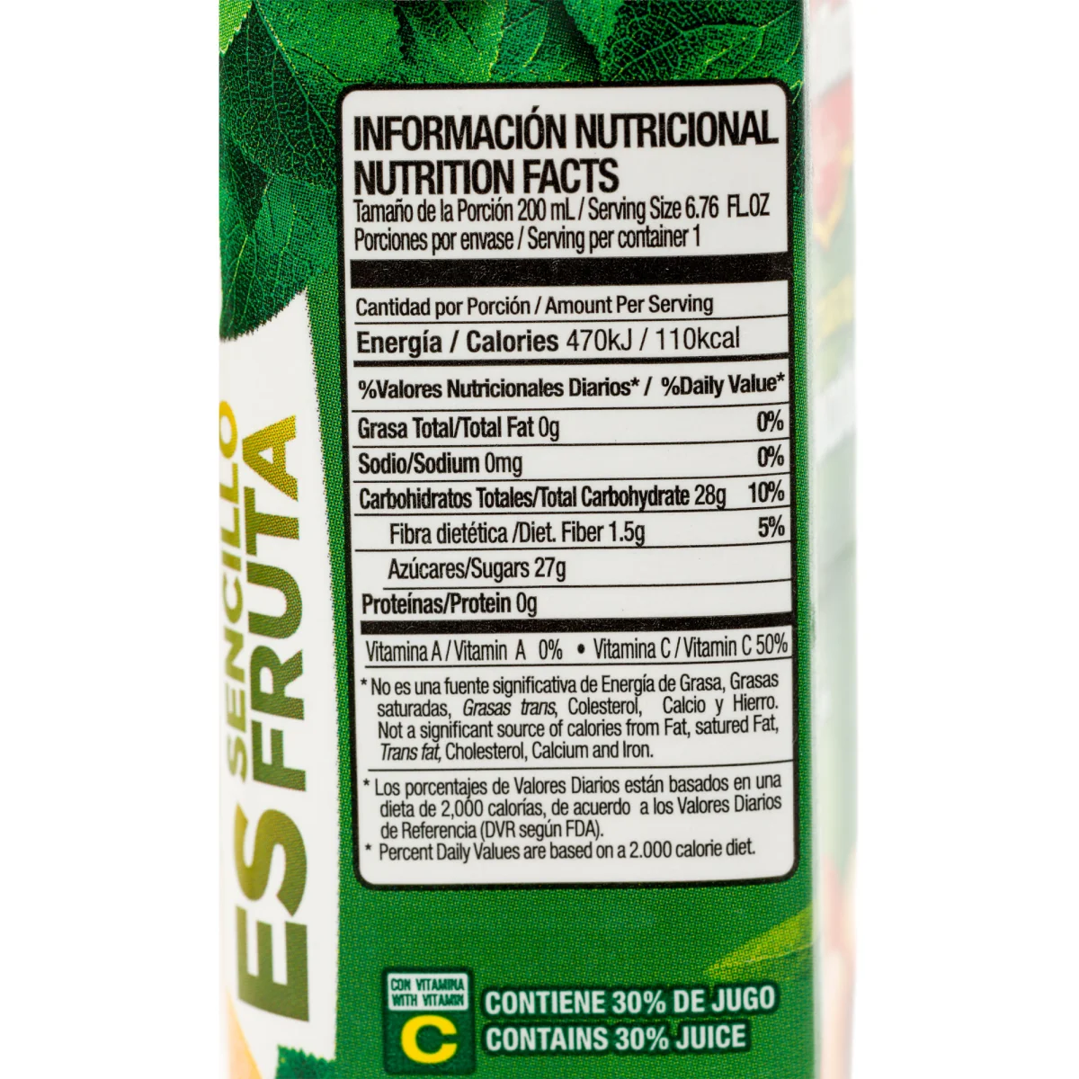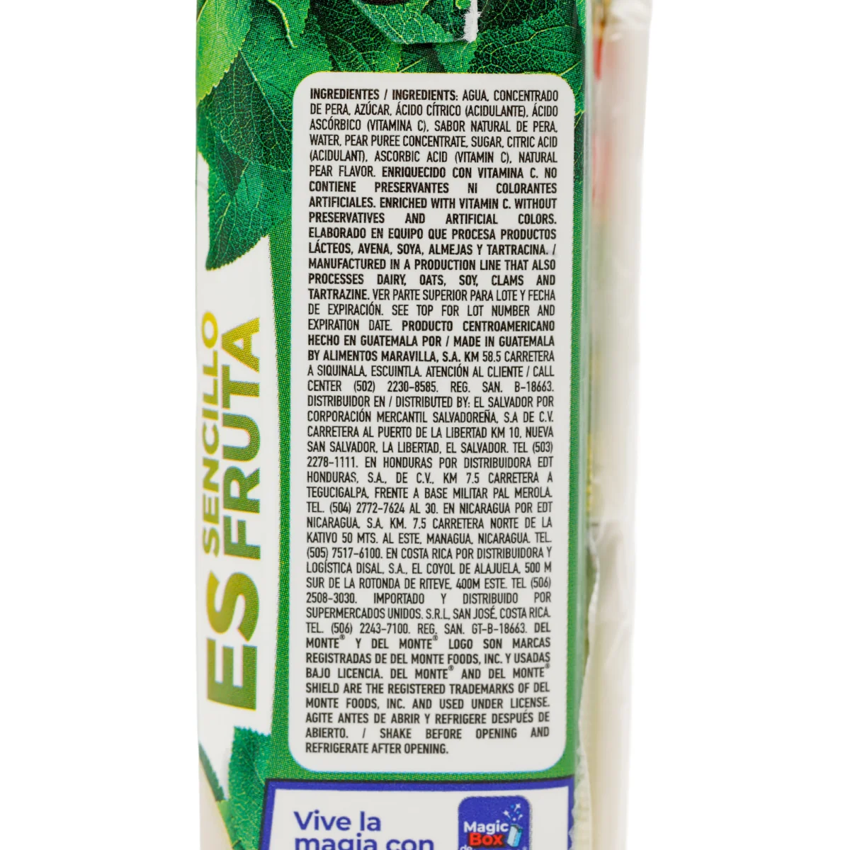 | Ingredientes | Agua, concentrado de pera, melocotón y manzana, azúcar, ácido cítrico, ácido ascórbico, sabor natural de pera, melocotón y manzana, vitamina C |
