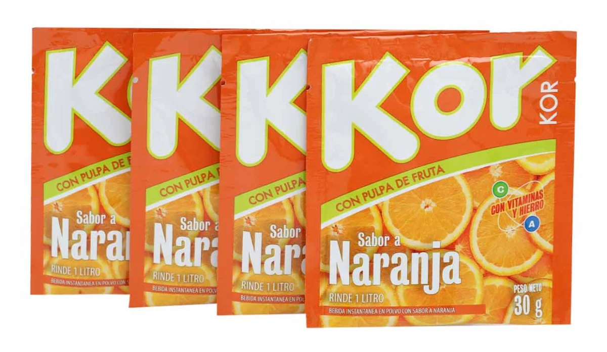 BEBIDA EN POLVO KOR KOR NARANJA 4 SOBRES 30G