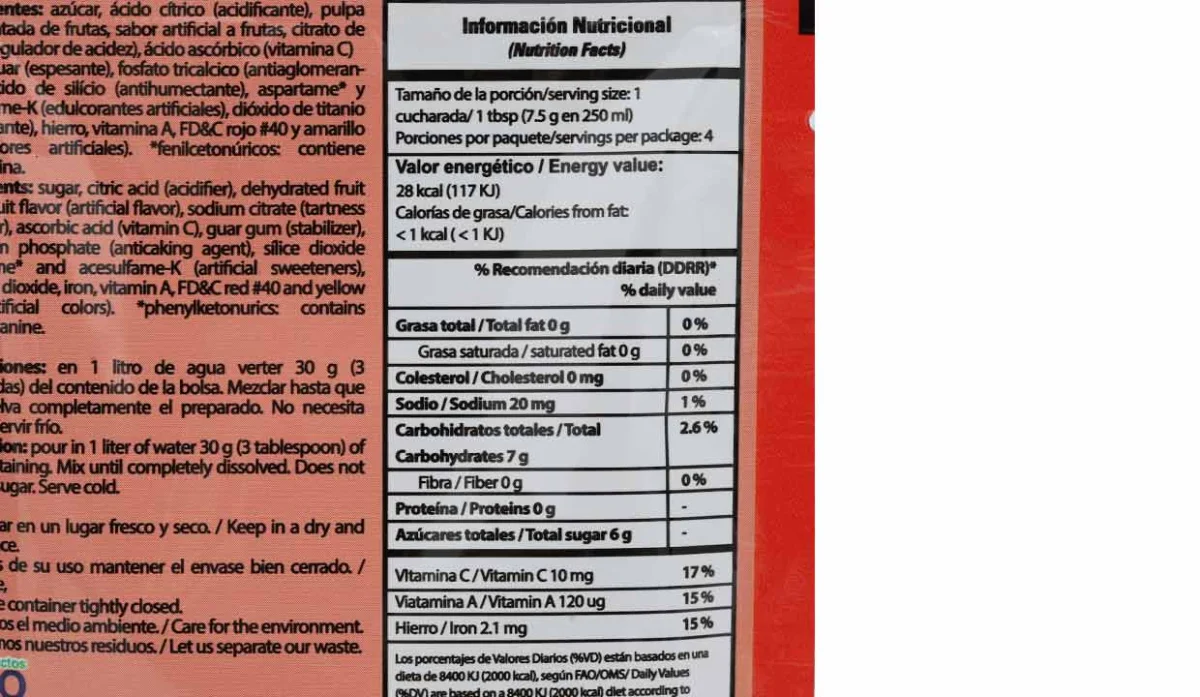 BEBIDA EN POLVO KOR KOR FRUTAS 4 SOBRES 30G