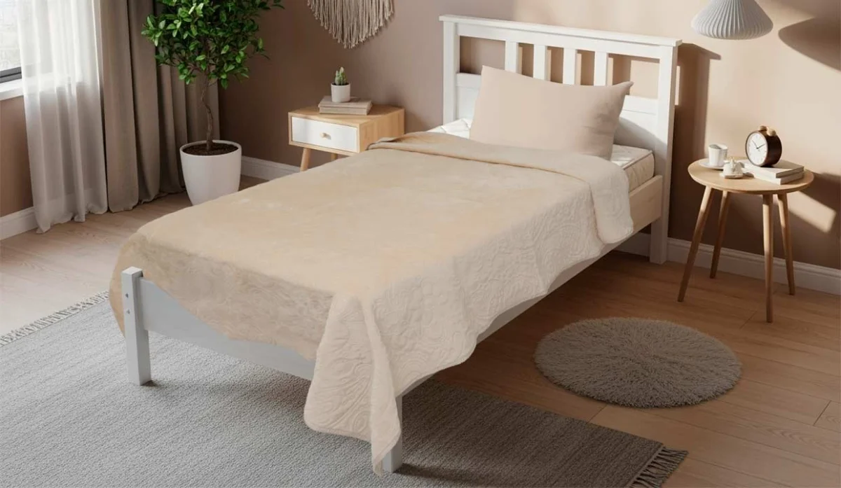 SET DE COLCHA Y FUNDAS BEIGE IND