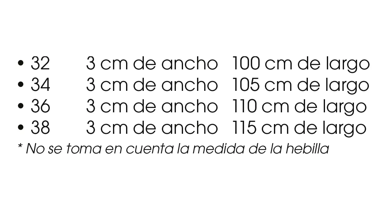 | Tamaño | 3 cm de ancho x 110 cm de largo |