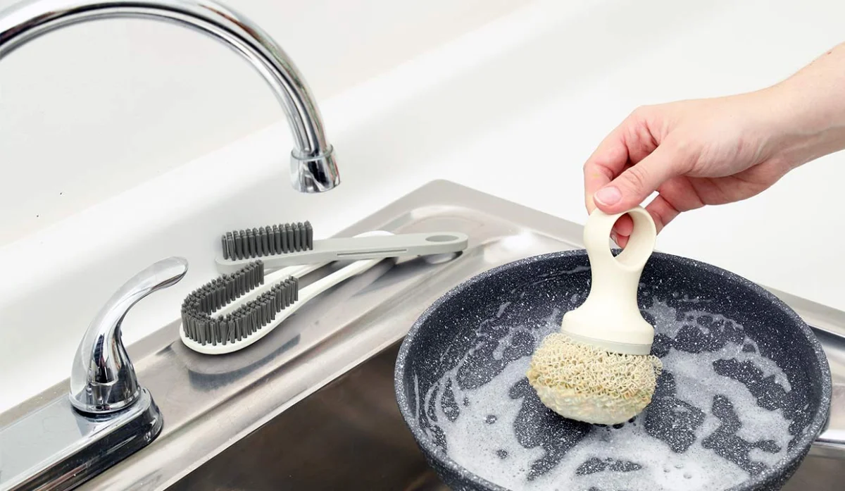 • El cepillo redondo permite restregar utensilios o objetos más dificiles de lavar