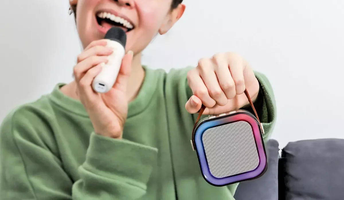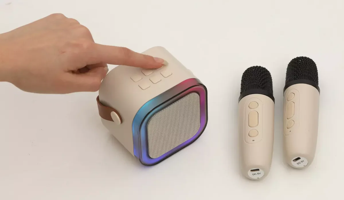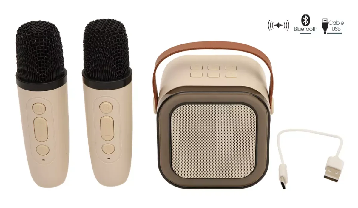 MINI KARAOKE CON LUZ Y MICRÓFONOS INALÁMBRICOS