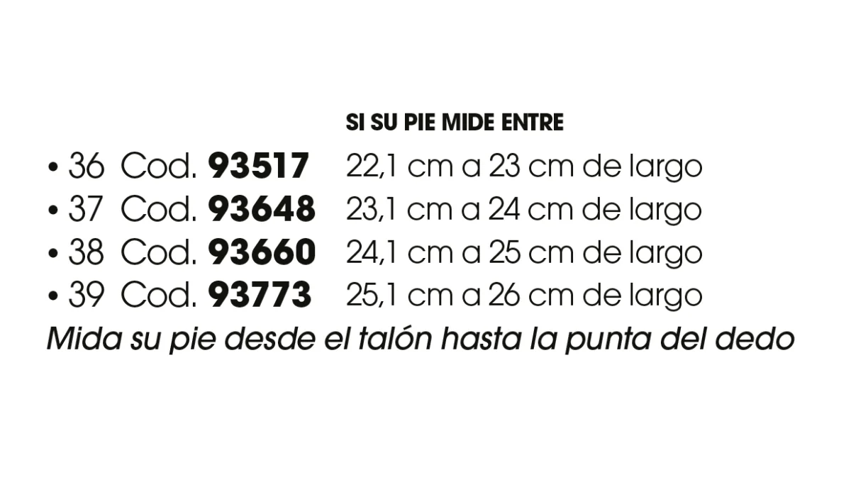 | Tamaño | Si su pie mide entre 24,1 cm a 25 cm de largo |